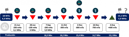 La disminución se atribuye principalmente a la sequía de la campaña pasada, que resultó en una reducción considerable de la producción y limitó las exportaciones a solo 3,11 millones de toneladas durante el ciclo comercial 22/23. Como consecuencia, quedaron pendientes 5,76 millones de toneladas para exportar, las cuales se espera que se cubran con la producción de la nueva campaña 2023/24, producto de las prórrogas resueltas el año pasado.