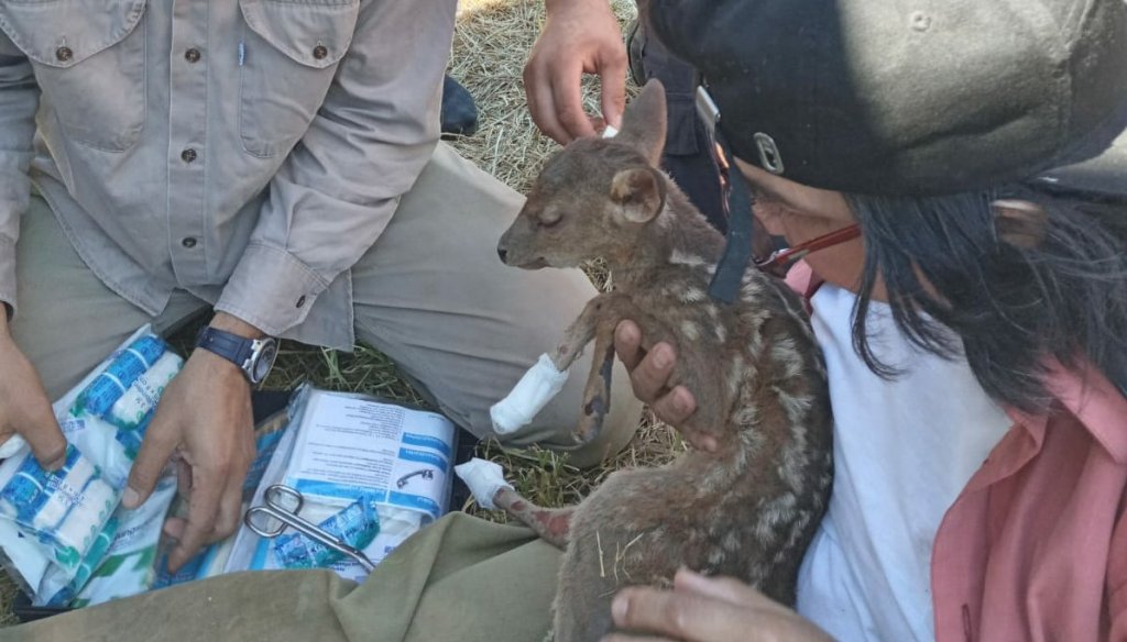 El ambientalista Luis Martínez, una de las personas más activas en la difusión de la situación que está viviendo la provincia del noreste argentino, comentó que bomberos de la localidad de Loreto lograron rescatar una cría de guazuncho o corzuela.